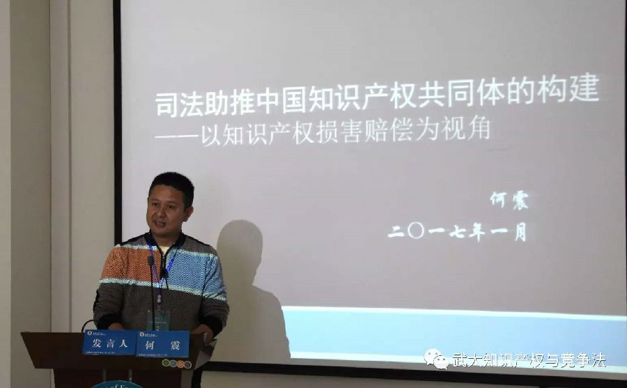 主题发言阶段,由湖北省武汉市江夏区人民法院院长、湖北省武汉市中级人民法院知识产权庭原庭长、武汉大学经济法研究所法学博士何震做主题发言。何院长以“司法助推法律共同体的建设——以知识产权损害赔偿为视角的展开”为题,从法院内外两个维度阐释知识产权损害赔偿的主流观点,即从法院外部来讲,有观点认为知识产权损害赔偿数额过低、保护力度不够,而从法院内部来讲,法官已用足法律资源,并认为其赔偿数额并不低。随后,何院长就以上内外认识差别巨大的现象,首先对相关外部观点进行展开分析,如诉求请求与判赔数额的差距较大、法定赔偿适用比例居高不下、整体赔判数额、证据保全和调查取证申请支持率、全国各地法院判赔数额差异、律师等合理开支支持、许可费证据审查等。其次,从法院内部角度分析认为,证据欠缺、知识产权商业价值不高、诉讼的恶性循环、许可费难以参考、商业维权目的偏离、鉴定评估机制缺失等因素构成了其“赔偿数额不低”的支持理由。最后,何院长认为,如上差异的实质是知识产权共同体的缺失,并就消除共同体之间的差异提出了“提升理念认知,加大损害赔偿,体现市场价值”、“提升共同体行为规范认识,求同存异,共同发展”等路径设计和考量。何院长的主题发言务实精彩、内容丰富且主题鲜明。