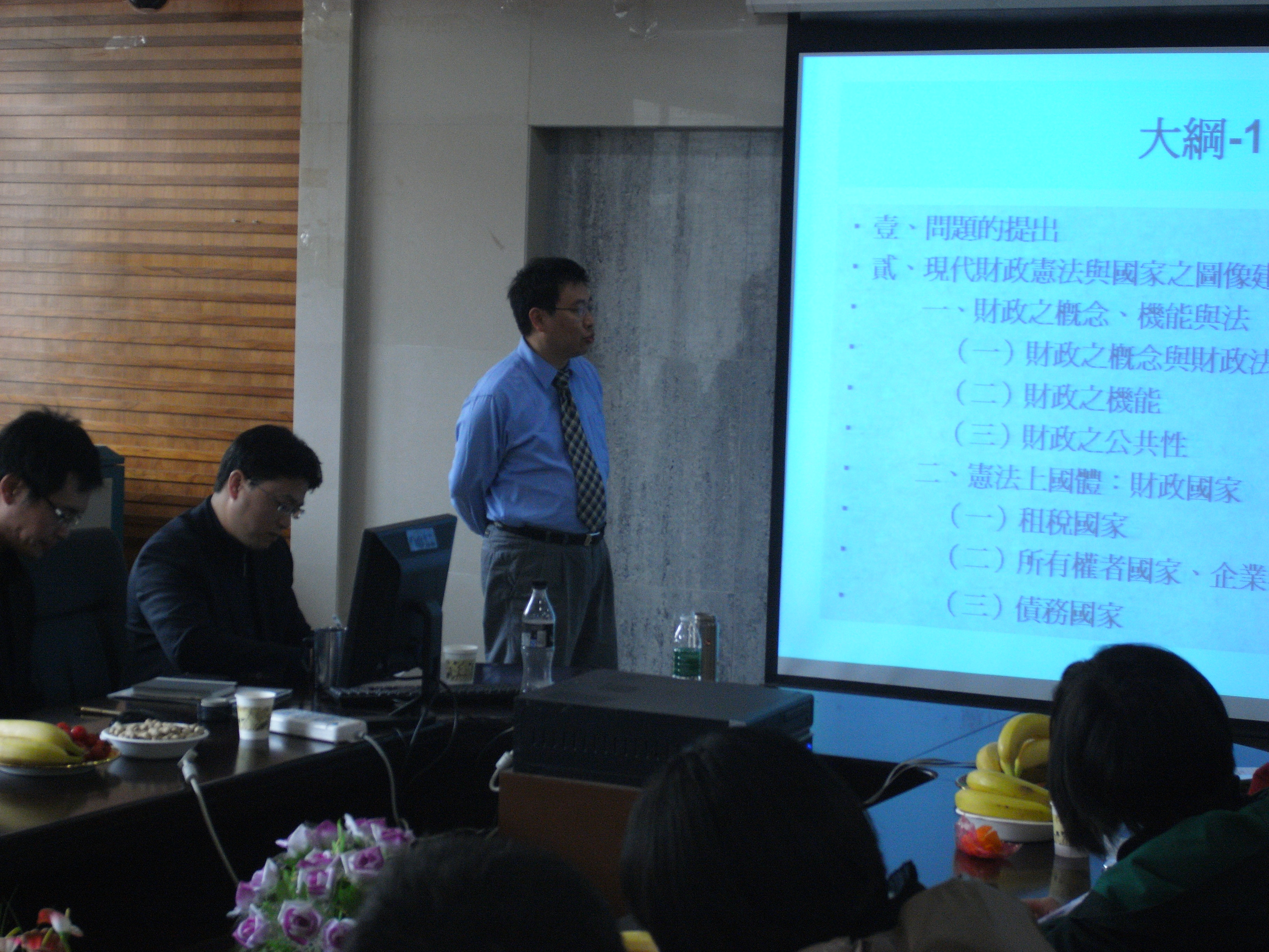 2011年3月27日下午3点,财税法学术茶座第五期在法学院209会议室举办。台湾高雄第一科技大学副教授廖钦福博士以“财政宪法的崩落与危机——从经济发展与财政负担间的摆荡说起”为题做了主题报告。湖北省法学会研究部陈志伟处长,中南财经政法大学法学院黎江虹教授、华中科技大学法学院彭礼堂教授、中南民族大学法学院段晓红教授,以及来自其他高校和实务部门的数十位专家学者莅临指导,经济法研究所的博士、硕士生及其他兄弟院校的研究生参与了此次茶座,茶座由武汉大学经济法研究所税法研究中心熊伟教授主持。