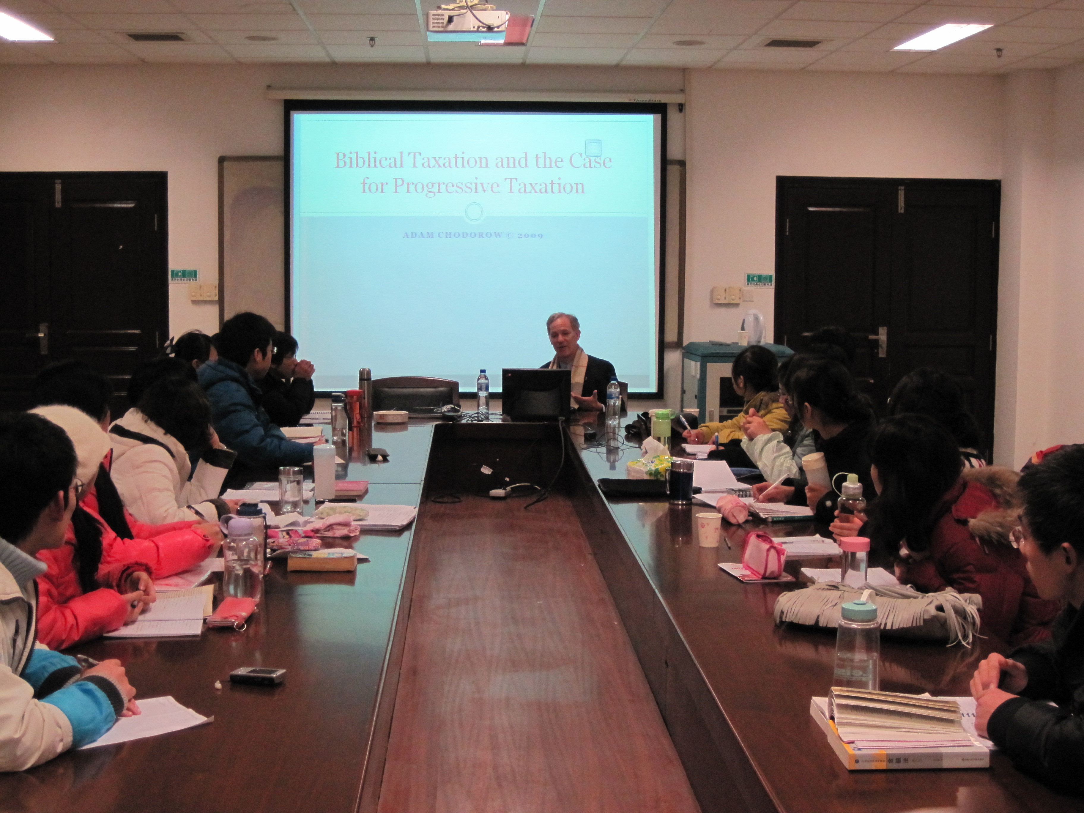 11月29日,为庆祝武汉大学经济法研究所恢复法学教育三十周年,美国富布莱特学者、亚利桑那州立大学Adam Chodorow教授应邀在经济法教研室进行两场税法讲座,题目分别为“美国的税收政策简介”以及“圣经与美国税法”。讲座由熊伟教授主持。